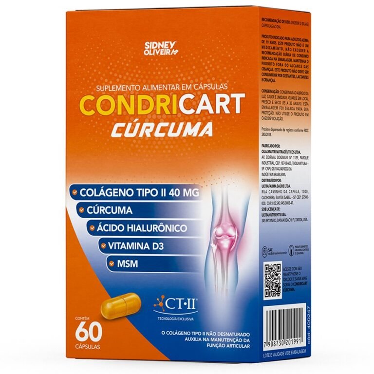 Colágeno Tipo Il+Cúrcuma+Ácido Hialurônico+Vit D3+Msm Condricart Cúrcuma 60 Cápsulas Sidney Oliveira