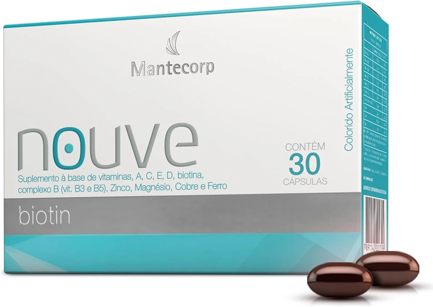 MANTECORP – Nutracêutico Nouve Biotin – Unhas Mais Resistentes, Reduz Queda Capilar, Fortalece Fios – Biotina, Benefícios Duradouros – 30 Cápsulas quantidade